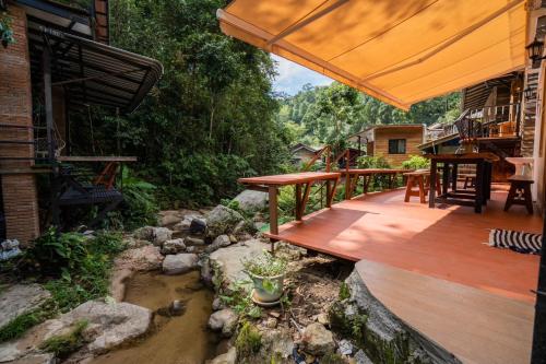 Located by the stream, the sound of flowing water all night. Vintage style, very close to nature. Affordable prices (approximately 500-1,000 baht/night depending on the time of year).